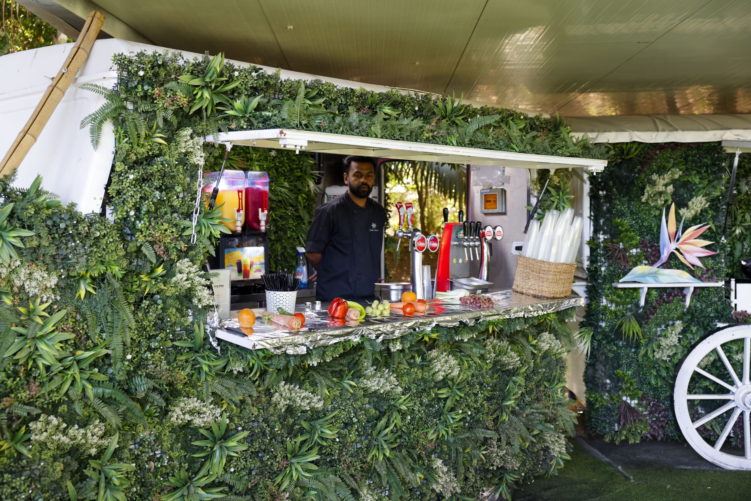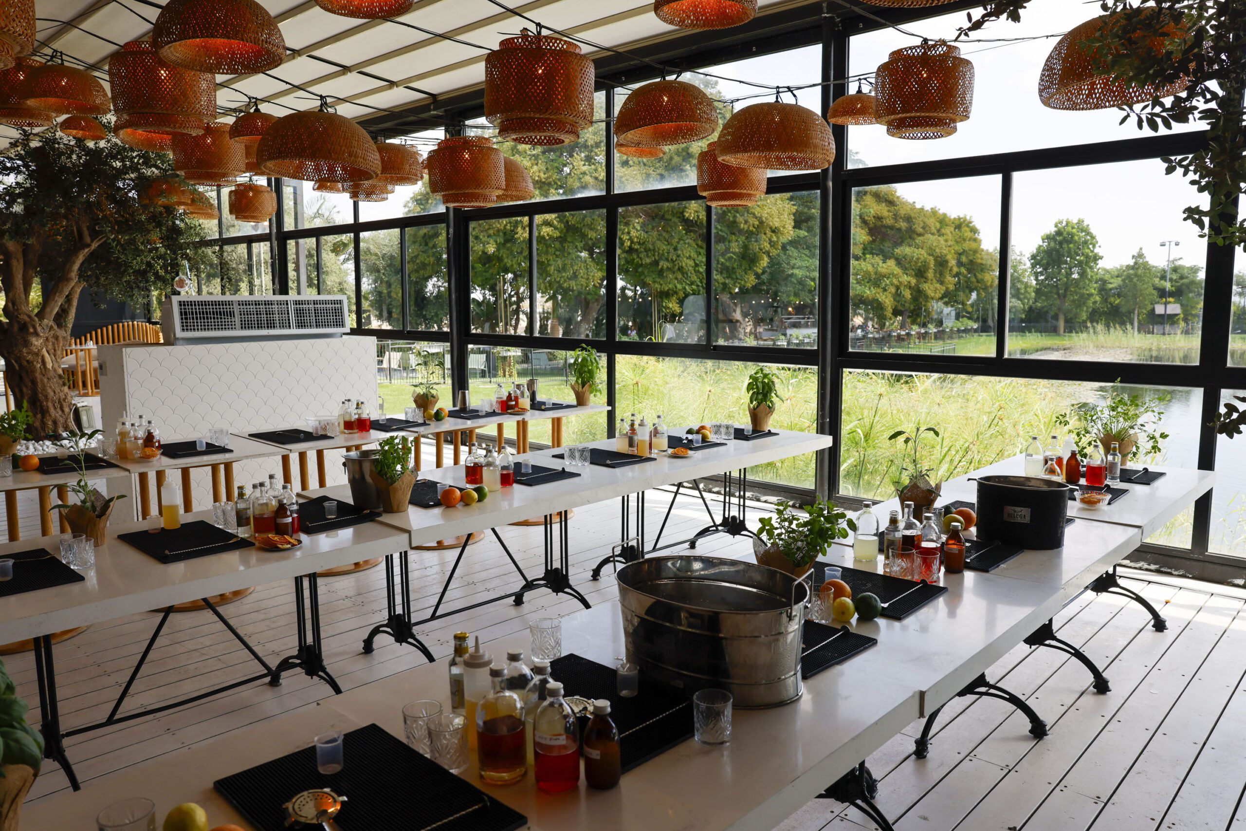 Yoga and wellness zones, cocktail workshops, off-road rides, spa treatments, wine tastings, and a mid-day pool party.